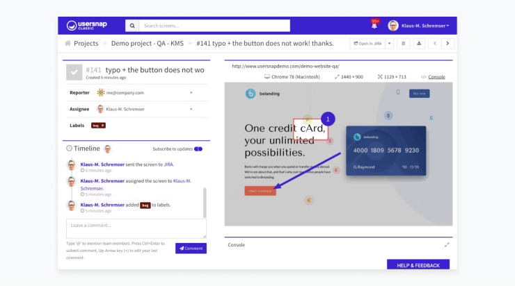 If you’re looking to get more detailed feedback as part of an interview or survey, consider a tool like usersnap that allows users to tag specific areas of the software that they want to comment on.
